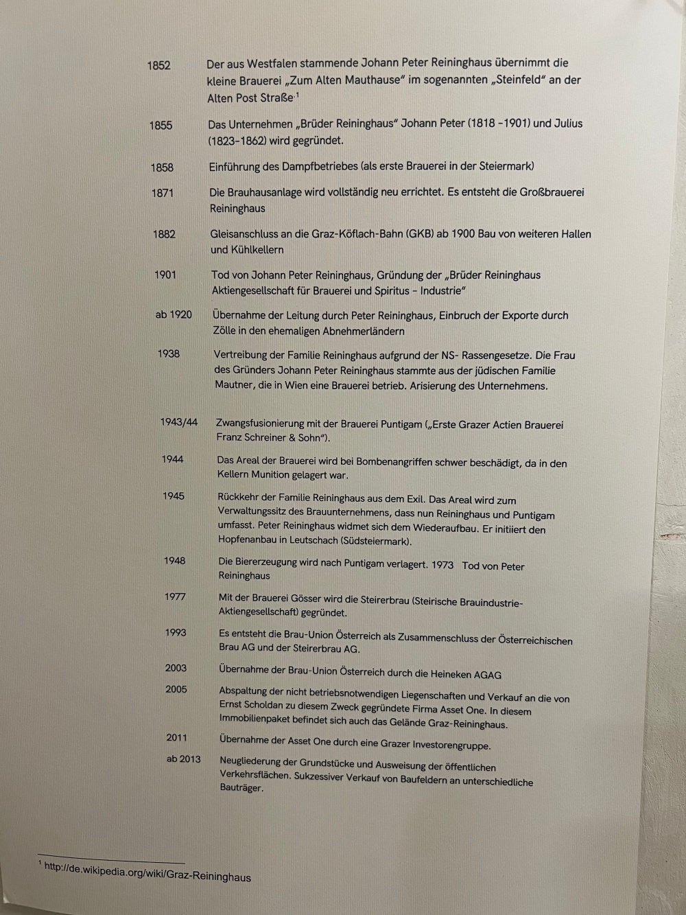 - Zweiter Weltkrieg: Die Familie Reininghaus musste 1939 emigrieren, und während des Krieges wurde unter den Brauereigebäuden eine Rüstungsfabrik errichtet.